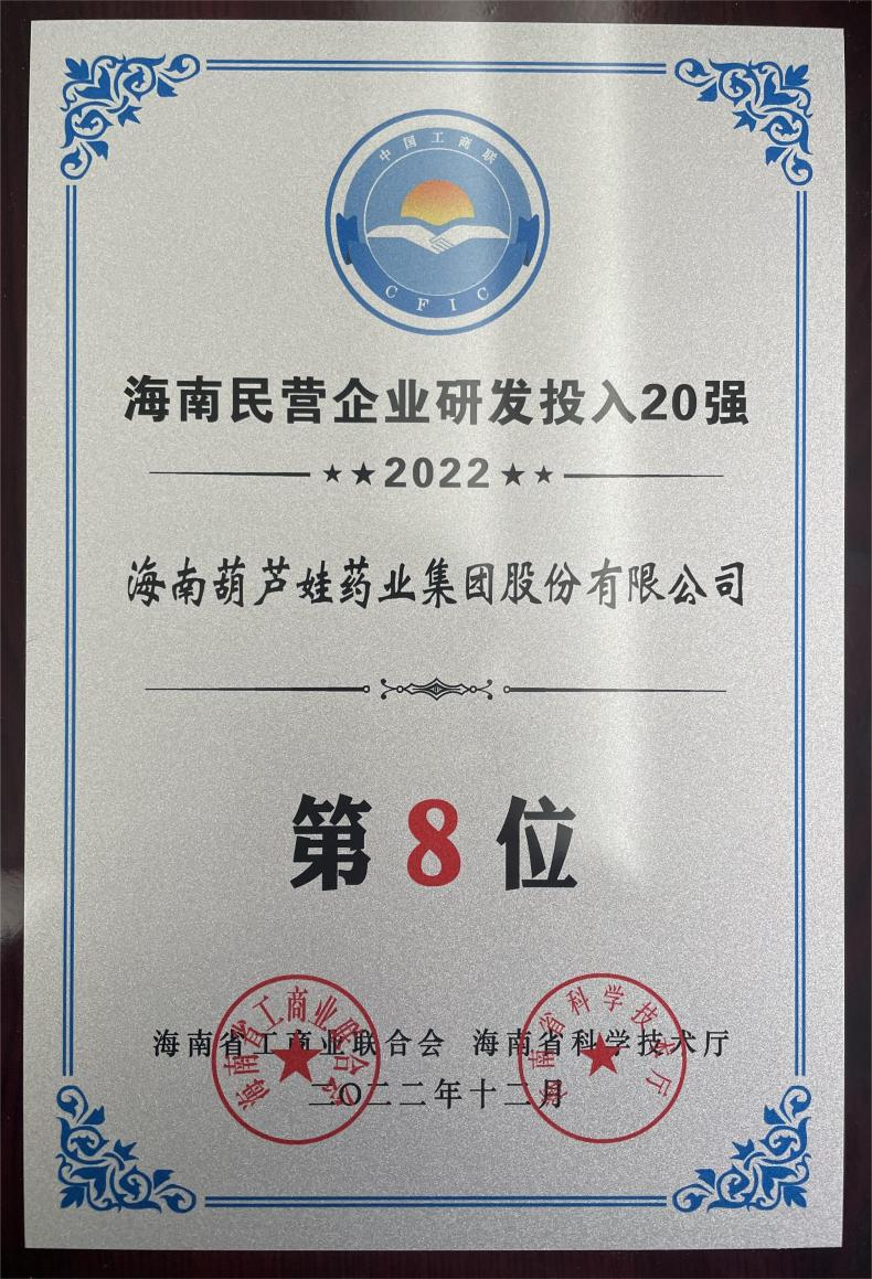 12月23日,2022海南民营企业50强和研发投入20强发布会在海口举行。会上发布了“2022海南民营企业50强”“2022海南民营企业研发投入20强”榜单和分析报告。5001拉斯维加斯药业再次荣登两榜,在海南民营企业50强榜单中位列第25位,较去年上升8位,这也是公司连续三年登榜;在海南民营企业研发投入20强中位列第8位,较去年上升7位。