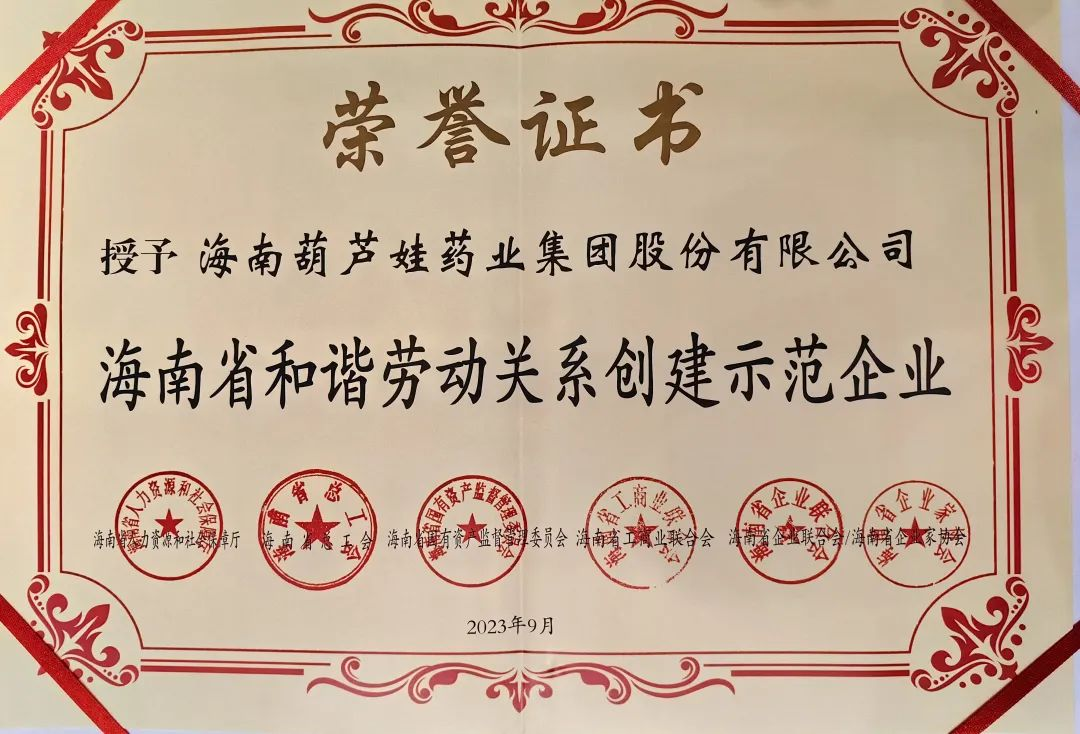 5001拉斯维加斯药业集团获评“海南省和谐劳动关系创建示范企业”